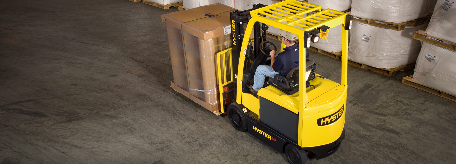 The E45-70XN is the newest line of electric forklifts from Hyster. These forklifts offer advancements in quality and ergonomics making them one of the most operator-friendly AC-powered forklifts on the market.